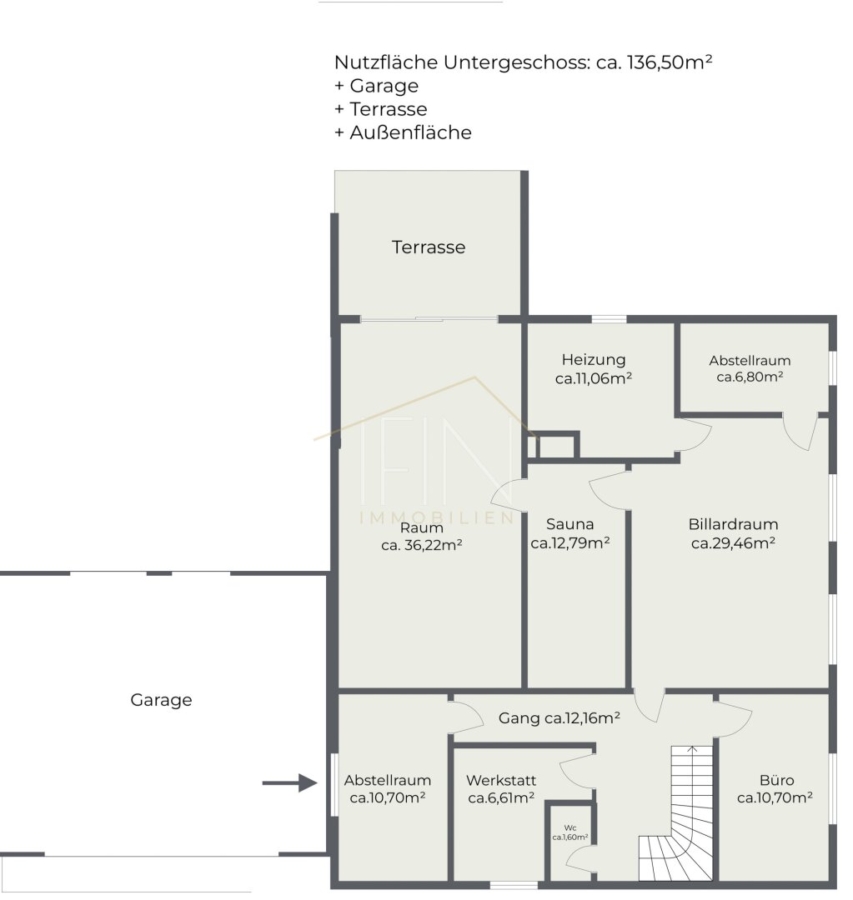 Die Garage mit automatischem Tor bietet Platz für mehrere PKWs und komfortables Ankommen bei jeder Witterung. Ergänzt wird dies durch eine eigene Werkstatt, ideal für Heimwerker, Hobbys oder zusätzlichen Stauraum.