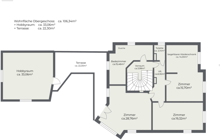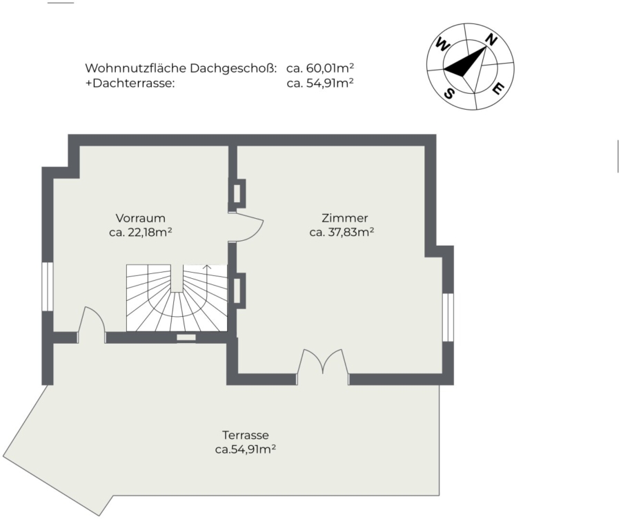 Zugang zur Terrasse und Übergang zu einem Hobbyraum im Dachboden des vorderen Haustraktes