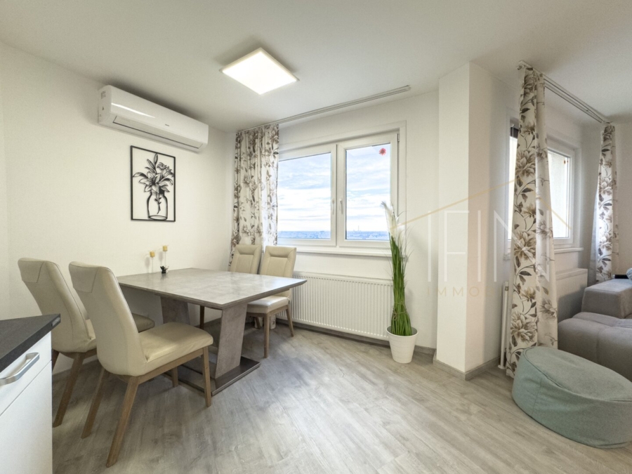 Wohnen über den Dächern Wiens: Diese stilvolle Maisonette im 16. Stock verbindet Weitblick, Licht und moderne Wohnqualität – ein Zuhause für alle, die Stadt lieben, aber Ruhe suchen.