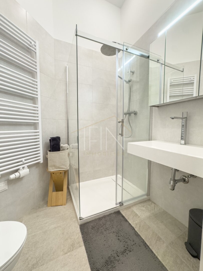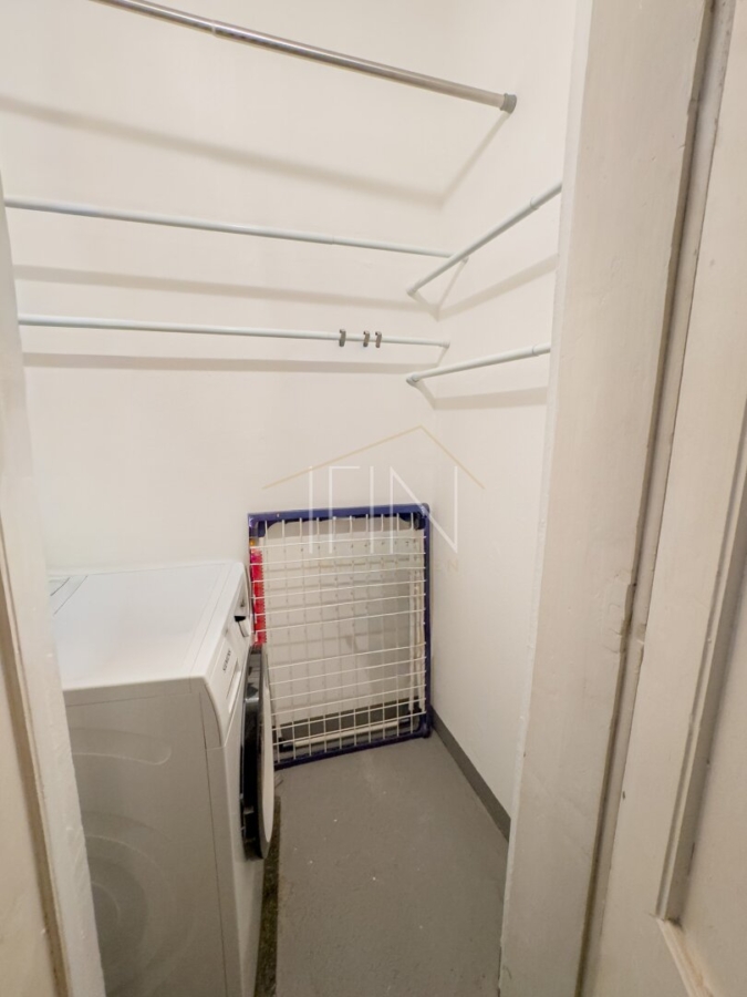 Ein besonders praktisches Detail stellt der zusätzliche Abstellraum im Stiegenhaus dar. Ausgestattet mit Waschmaschinenanschluss bietet er wertvollen Stauraum und sorgt dafür, dass der Wohnraum selbst frei und aufgeräumt bleibt – ein klarer Mehrwert im urbanen Alltag.